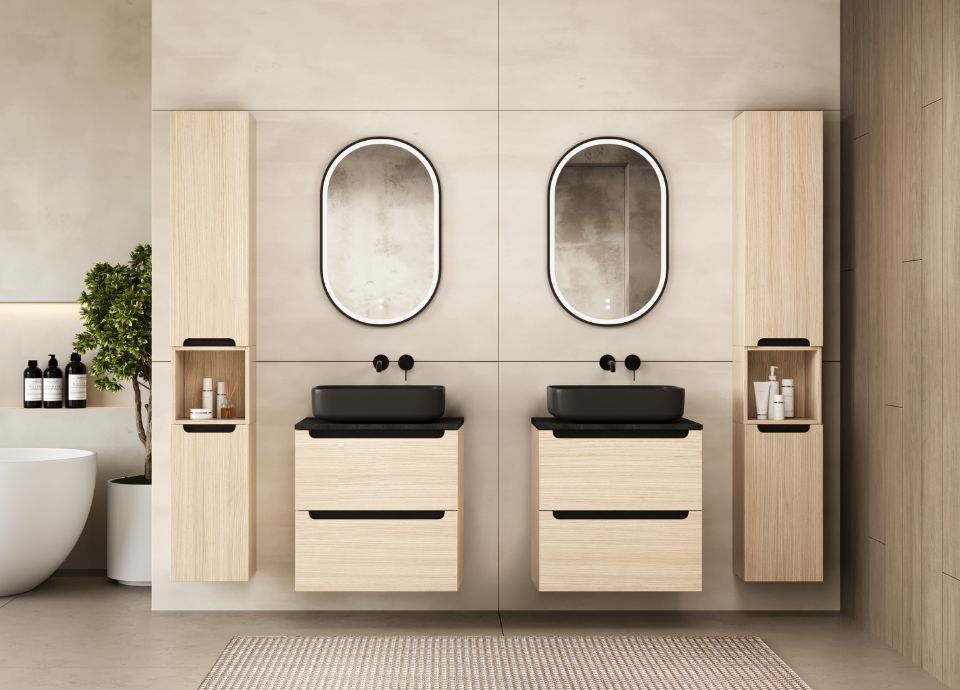 Przytulność i nowoczesność mogą iść ze sobą w parze. Wystarczy, połączyć modne wzornictwo z ciepłym dekorem o barwie drewna. W ten właśnie sposób stworzyliśmy meble, z którymi łatwo urządzisz piękną łazienkę.