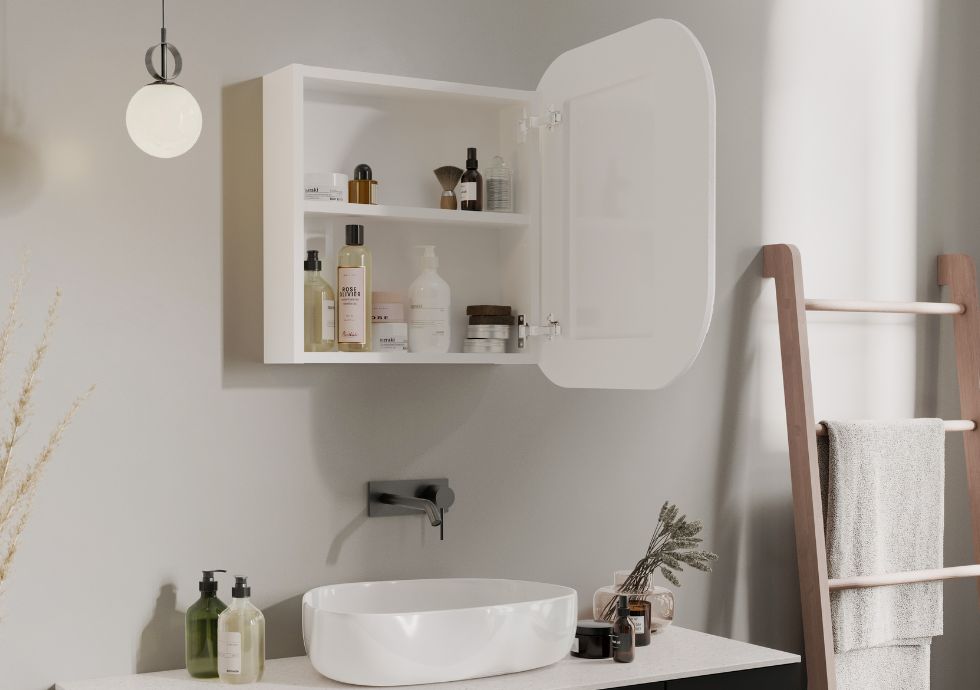 Dopełnij aranżację swojej łazienki szafką ukrytą za lustrem. Szafki lustrzane z kolekcji Mo-re to dodatkowe miejsce do przechowywania kosmetyków i łazienkowych drobiazgów.
