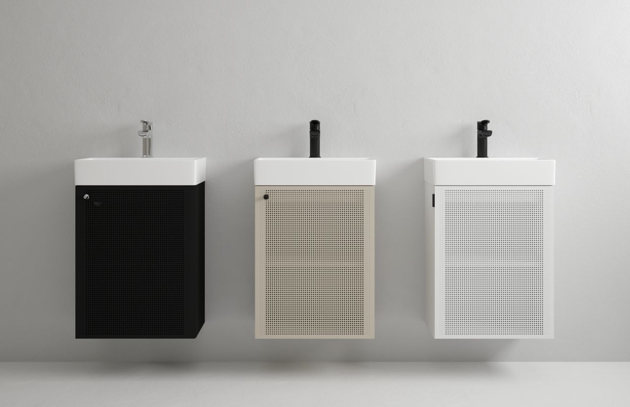 Szafki z kolekcji Doti przyciągają uwagę już na pierwszy rzut oka. Ich znakiem rozpoznawczym są ażurowe, perforowane fronty wykonane z metalu, dzięki którym meble są efektowne wizualnie, ale też praktyczne. Wyróżniają się dużą odpornością na warunki łazienkowe, są łatwe w utrzymaniu czystości i świetnie sprawdzają się w codziennym użytkowaniu. Metalowe fronty zapewniają doskonałą wentylację, co w łazience ma ogromne znaczenie. Dzięki proszkowemu malowaniu zyskują trwałość oraz eleganckie wykończenie.