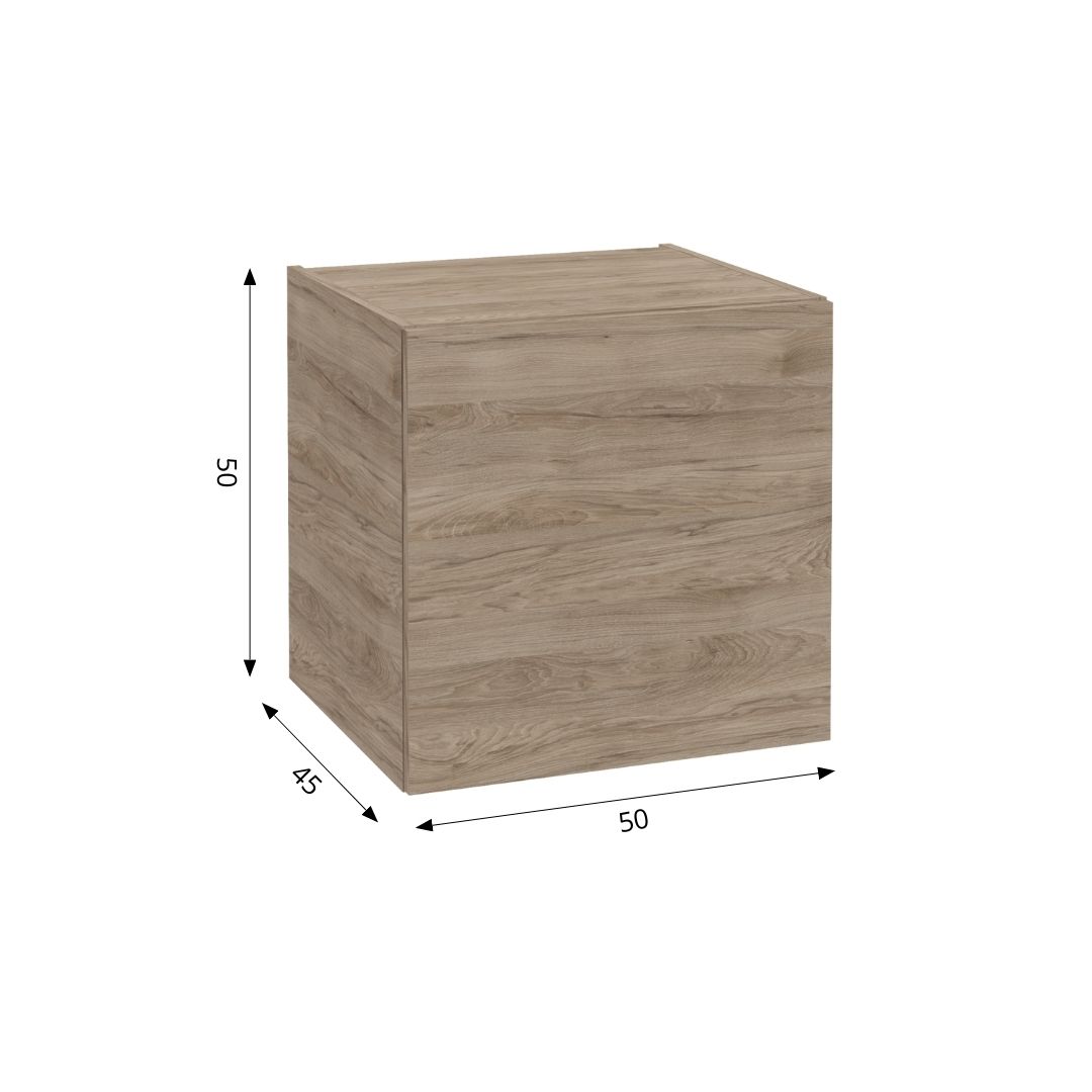 Szafka Faro B50 w udany sposób łączy inspirację minimalizmem z duchem nowoczesnej elegancji. Prosta forma, dopracowane detale i przytulny dekor w odcieniu orzecha rockford na frontach i korpusie sprawiają, że mebel będzie się doskonale prezentował w łazienkach w różnym stylu.