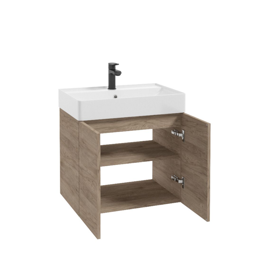 Szafka podumywalkowa z kolekcji Faro w niezwykle udany sposób łączy inspirację minimalizmem z duchem nowoczesnej elegancji. Prosta forma, dopracowane detale i ciepły dekor w odcieniu dębu artisan na frontach i korpusie sprawiają, że mebel będzie się doskonale prezentował w łazienkach w różnym stylu.