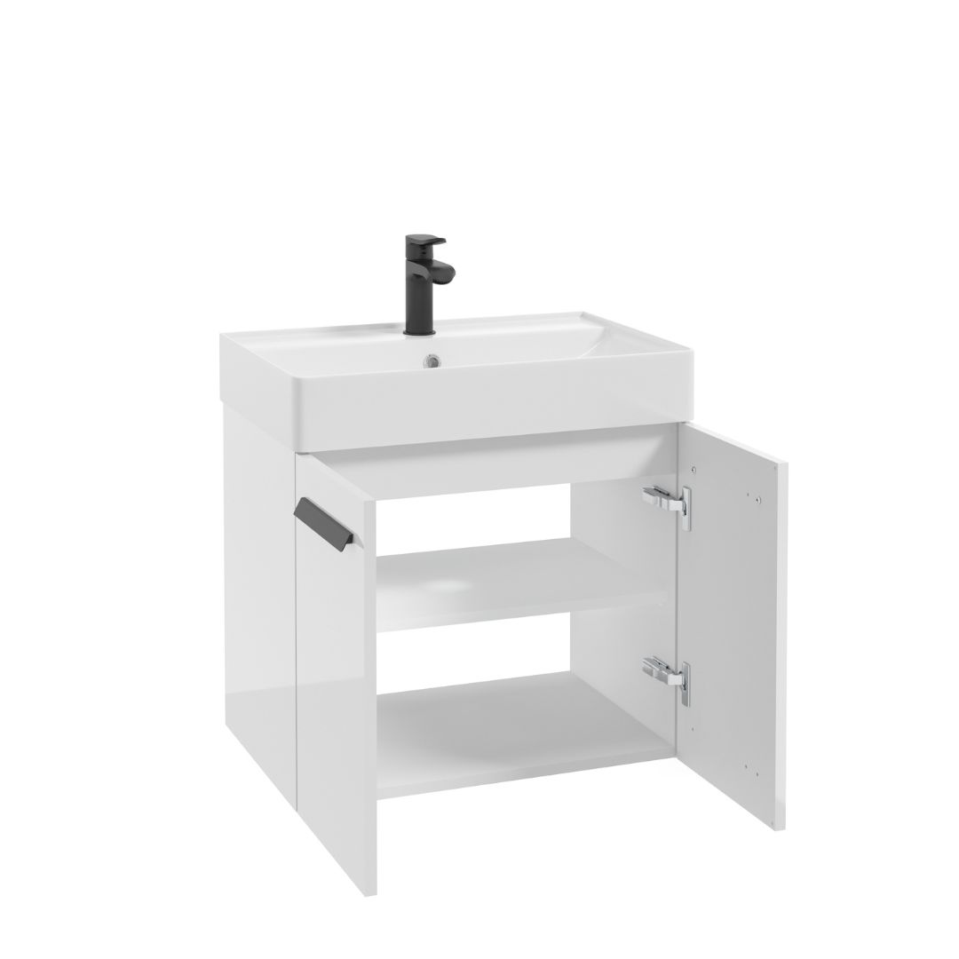 Szafkę Faro D60 posiada wygodne w użytkowaniu drzwi, za którymi kryje się sporo miejsca do przechowywania kosmetyków i łazienkowych akcesoriów. Drzwi posiadają system cichego domykania soft close, który podnosi komfort korzystania z mebli.