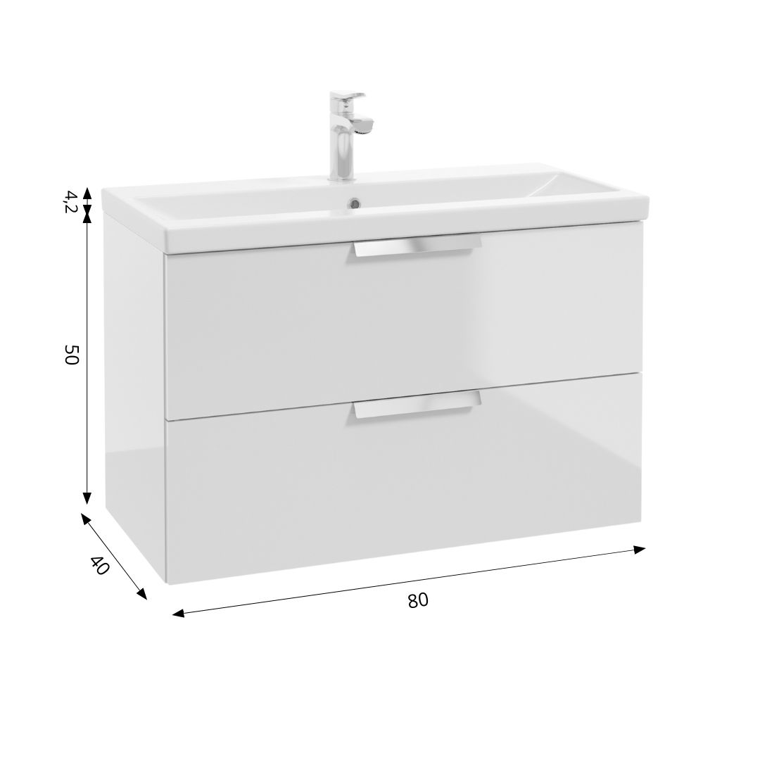 Szafkę połączysz wyłącznie z umywalką meblową. Pasujące umywalki meblowe z naszej oferty to: OLEX 80 i GO 80. Umywalki nie są częścią zestawu, należy je kupić osobno.