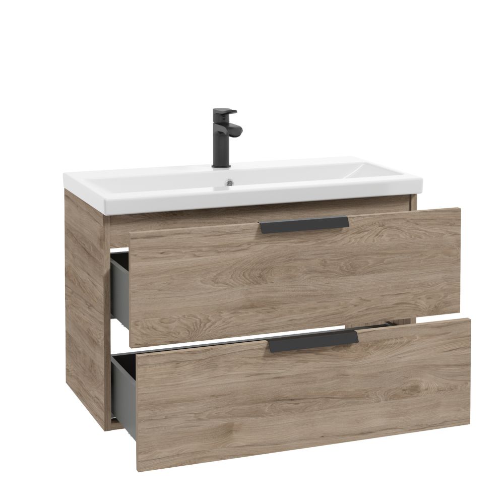 Szafkę połączysz wyłącznie z umywalką meblową. Pasujące umywalki meblowe z naszej oferty to: Go 80 i Olex 80. Umywalki nie są częścią zestawu, należy je kupić osobno.
