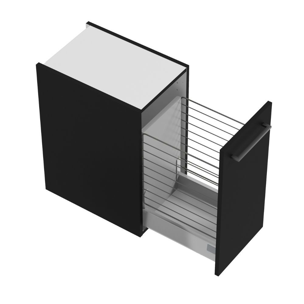 Kosz pasuje do głębokich szafek wiszących A30 STILLA i METRO SYSTEM. Możesz zaplanować go pod blatem przy umywalce, albo połączyć z innymi szafkami.