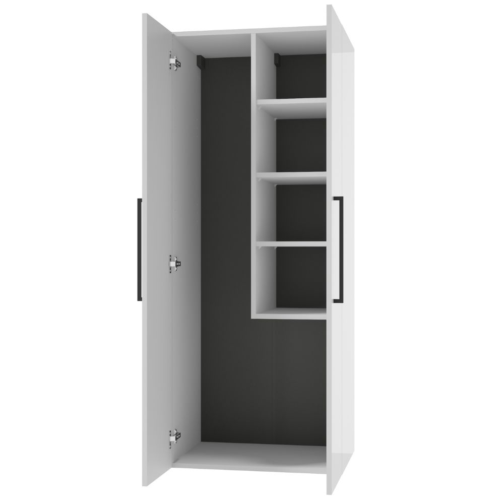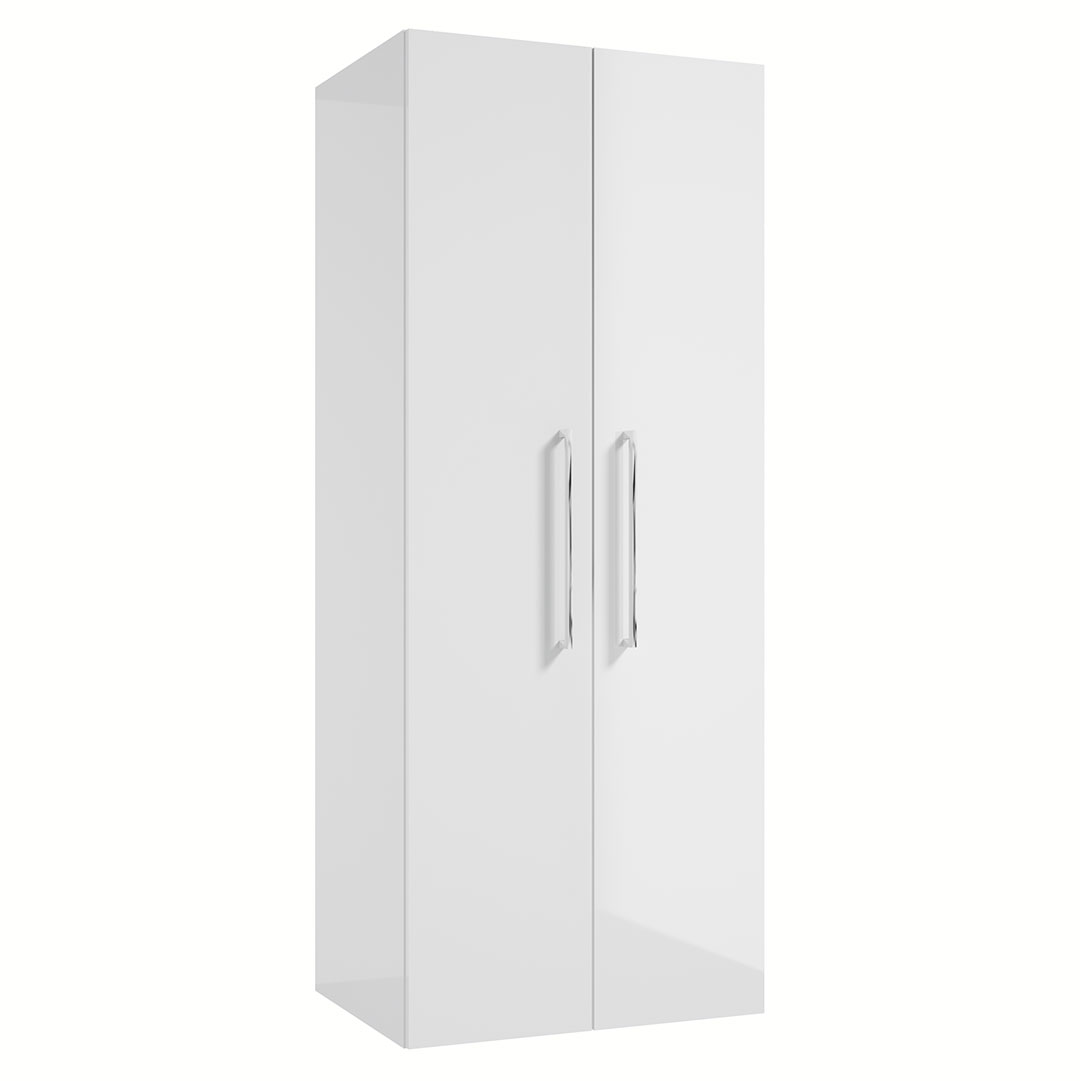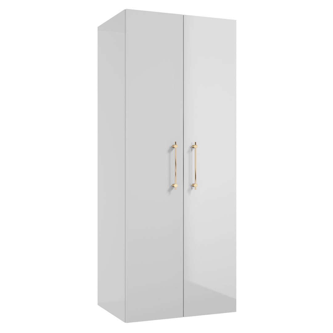 Wiszący, szeroki słupek METRO SYSTEM C60 z drzwiami wyposażonymi w system soft close. Front i korpus pokryte są światłoutwardzalnym lakierem, są trwalsze i bardziej odporne na wilgoć. Relingowe uchwyty Latte podkreślają geometryczną linię szafki. Niezwykle pojemna szafka, w której przechowywac można nawet wiadro z mopem.