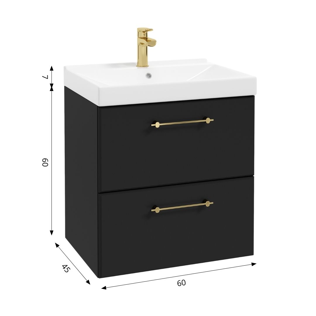 Szafka pod umywalkę Mo-re D60 wyróżnia się stonowanym i minimalistycznym charakterem. Na krawędziach frontów znajduje się delikatne, geometryczne frezowanie, podkreślające elegancję mebla. Prosta forma w połączeniu z elegancką czernią sprawiają, że szafka będzie się świetnie prezentować w nowoczesnych łazienkach, ale przy odpowiedniej aranżacji doskonale odnajdzie się też w bardziej tradycyjnych wystrojach.