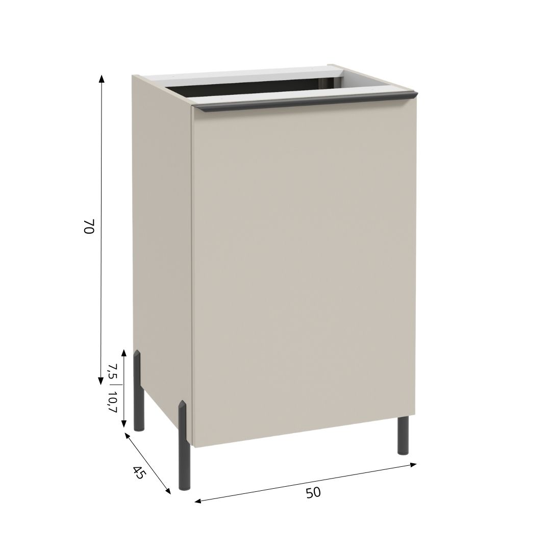 Szafka Nino B50 w kolorze kaszmir mat to propozycja dla tych, którzy cenią subtelną elegancję i spokojną kolorystykę. Jej gładkie fronty i prosta forma tworzą harmonijną całość, która dobrze odnajduje się zarówno w przytulnych, domowych aranżacjach, jak i w bardziej nowoczesnych przestrzeniach. Matowe wykończenie nadaje wnętrzu miękkości i przyjemną głębię.