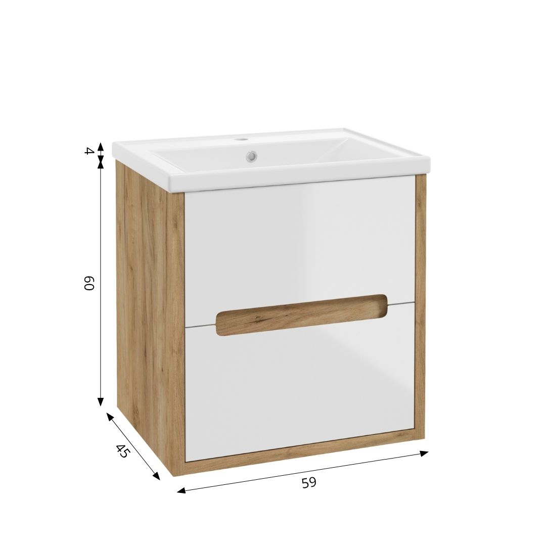 Szafkę podumywalkową NOBU D60 wyposażono w dwie pojemne szuflady na kosmetyki i łazienkowe akcesoria. Górna szuflada posiada przegrody ułatwiające utrzymanie porządku.