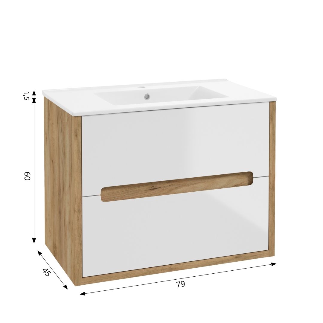 Szafkę podumywalkową NOBU D80 wyposażono w dwie pojemne szuflady na kosmetyki i łazienkowe akcesoria. Górna szuflada posiada przegrody ułatwiające utrzymanie porządku.
