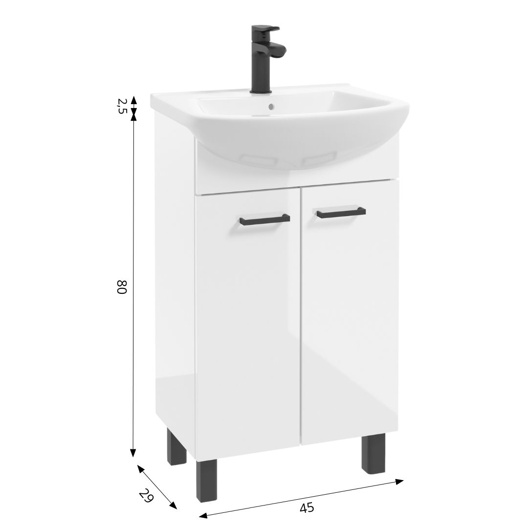 Minimalistyczna forma, maksymalna funkcjonalność – szafka pod umywalkę Novelty D50 została zaprojektowana z myślą o wygodnym użytkowaniu nawet w niewielkich przestrzeniach. Jej uniwersalny, biały kolor w połączeniu z kontrastującymi, czarnymi detalami (uchwytami i nóżkami) tworzy nowoczesny i ponadczasowy wygląd, który łatwo dopasujesz do różnych aranżacji łazienki. Podwyższona konstrukcja na stabilnych nóżkach nie tylko nadaje lekkość wizualną, ale również ułatwia utrzymanie czystości pod meblem.