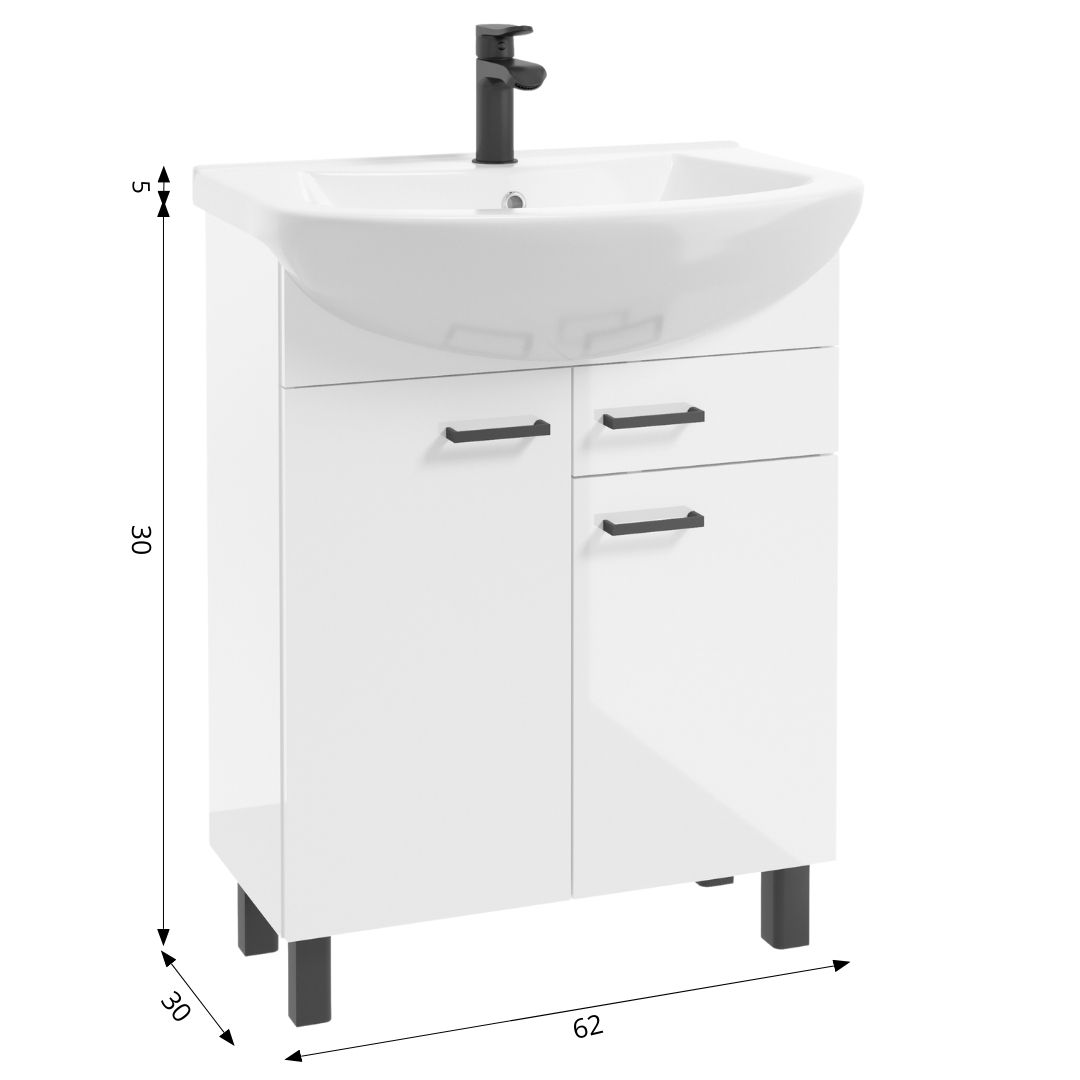 Umywalka Tomaso 65 jest dołączona w komplecie do szafki i idealnie do niej dopasowana. Jej głęboka, ergonomiczna misa zapewnia wygodę codziennego użytkowania.