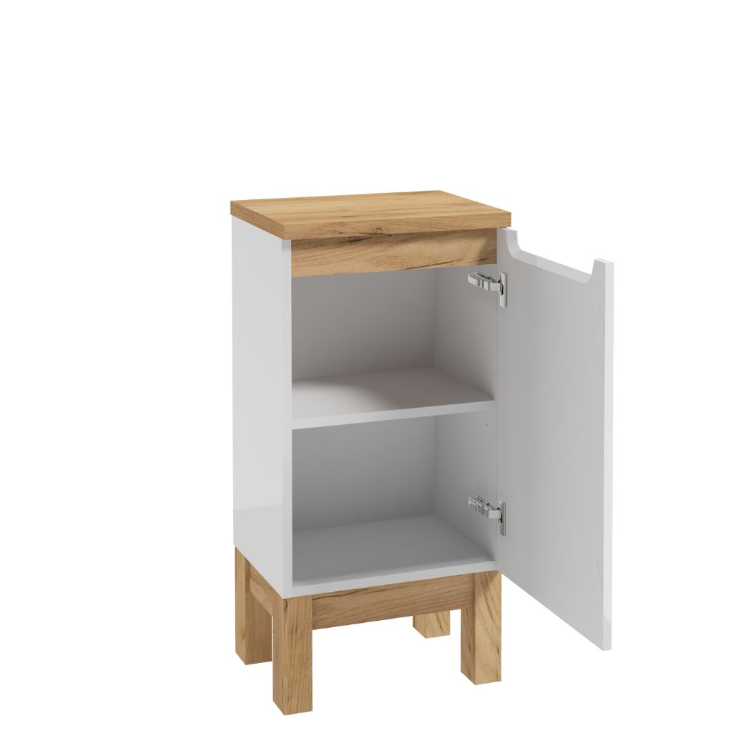 Szafka podumywalkowa najlepiej prezentuje się w towarzystwie innych mebli z kolekcji Space System, np. ze słupkiem łazienkowym, a także z szafkami wiszącymi z lustrem z innych zestawów, np. z kolekcji SALSA.