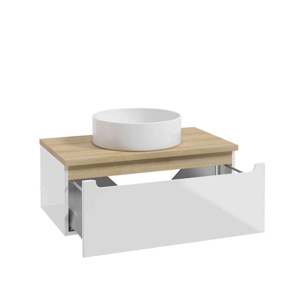 Szafkę możesz połączyć z blatem i umywalką nablatową lub umywalką meblową. Pasujące umywalki meblowe to PLAN 80, ZEEN 80, VERSO 80, NANU 80, PURO 80. Umywalki nie są częścią zestawu i należy je zakupić osobno.