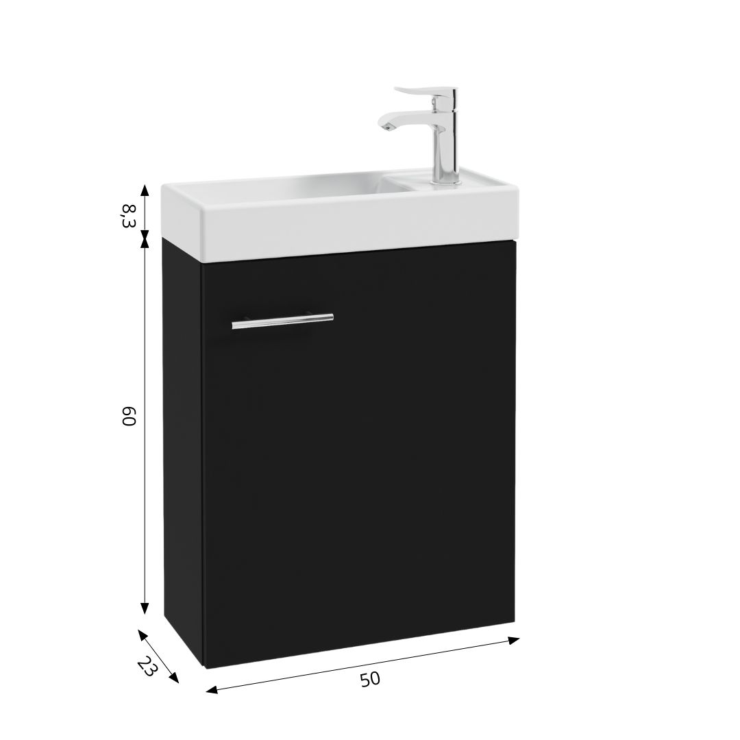 Funkcjonalna i stylowa szafka pod umywalkę z umywalką ceramiczną MINI 50 to doskonałe rozwiązanie do niewielkich łazienek i toalet, w których liczy się każda przestrzeń. Mebel jest wąski i płytki, co sprawia, że doskonale wpasuje się nawet w najbardziej kompaktowe wnętrza, nie tracąc przy tym na wygodzie użytkowania.